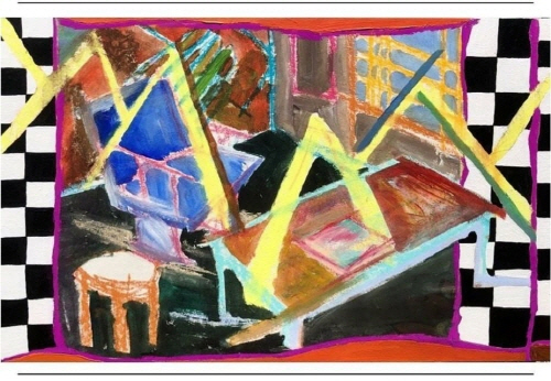 마혜련 作_사이와 사이사이 6_63x46.2cm_캔버스에 인디안잉크,색연필,패브릭_2021