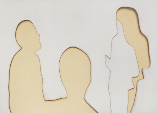 곽남신은 1980년 희미한 나무그림자 작업으로 데뷔한 후 그림자와 실루엣을 모티브로 오랫동안 작업해 온 작가이다. 최근 들어서는 종이나 금속판을 오려 내서 실루엣이나 그림자 형상을 만들고 그것들을 그림으로 재조합해서 표현하는 방식으로 변모하고 있다. 근래의 그림들은 이러한 그림자와 실루엣 형상, 몇 가지 재질의 선의 표현, 네거티브와 포지티브의 하드보드 이미지로 이루어져 있고 그것들이 뒤엉켜 서로 다른 차원 간의 엉뚱한 관계를 맺기도 한다. 예를 들면 그림자가 그것이 드리워진 평면위에 놓인 낡은 철사와 이상한 관계를 맺기도 하고 하드보드지 실루엣 형상이 자신이 오려져 나온 나머지 판지의 반점을 바라보기도 한다. 또 네거티브와 포지티브 형상들이 소통이 불가능한 대화를 나누는 등 어찌 보면 엉뚱하고 초현실적 평면 공간을 탐닉하고 있다.