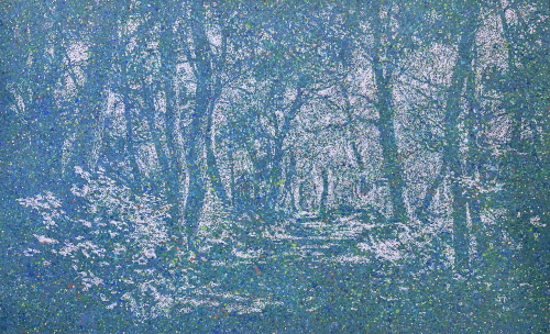 퍼즐 같은 단위 풍경들은 결국 관계의 합을 낳는다. 기술적 가지치기보다 ‘나답게 변화하는 것’, 작품 속에 자신의 이야기를 담는 것, 그것이 오늘의 손원영 작가가 추구하는 ‘관계풍경’이다. 상황-순간-공간-바람-냄새, 어찌 보면 연결되지 않을 것 같은 이 모든 것들은 작가 자신만 아는 이야기들이다. 이전까지의 작업이 공간을 표기하지 않은 넘버링(N0.~)으로만 구분됐다면, 이제는 ‘관계한 사람, 장소’ 등을 명시해 작품에 새로운 생명력을 부여할 예정이다. 변화는 호명된 작품 내면에서도 찾을 수 있다. 명암대비가 뚜렷했던 대비 공간은 ‘난시 트러블(astigmatism problem)’로 인해 대비가 적은 ‘레이어(Layers)’ 속에서 재구성된다. 작가가 명명한 <겹쳐지면 비로소 보이는 것들>은 인상파 기법들과도 유사한 방식(신인상파 화가들의 보색 혹은 대비효과를 통한 색의 파장효과) 속에서 ‘작가의 지금-여기’를 반영한다. 이전 작업을 변화시켜야 한다는 욕망은 2014년경 색면형 드립핑-추상형 이미지 탐구-상(象)에 대한 해석 과정들 속에서 자연스레 이루어졌다. 작가는 이에 대해 “어떤 이들은 색면 위에 드립핑한 추상구조를 구상을 그리기 위한 배경 혹은 과정이라고 생각하지만, 색은 감정과 이성 모두의 영역을 갖는다. 작은 색면은 이야기가 많고 자기 메시지를 전달하는 스토리의 영역”이라는 것이다. 콘트라스트가 줄어든, 배경과 이미지가 연결된 빛의 잔상들은 그렇게 양가성을 허물고 ‘관계풍경’이 된다. 작가는 어두움이 아닌 빛을 대상화하여 이미지를 생성하는 네거티브 필름효과를 선보인다.