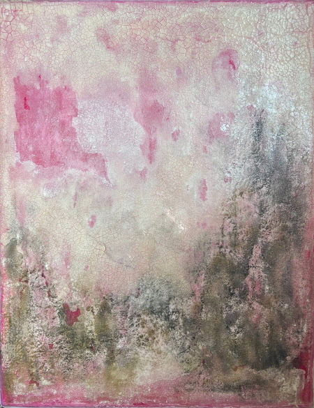 생명의 숭고함을 함축적인 단어로 표현할 수 있을까? 찾기 어려울것이며, 발상 자체가 교만하다고 느껴진다. 밀알의 싹틈을 눈을 감고 느끼노라면 자신을 녹여내어 타들어 가는 고통 속에서 결국 하나의 새싹을 틔어 낸다. 그 처절함과 경이로움을 한꺼번에 담으려고 했을까? 아니면, 그 경이로움만을 표현하려 했을까? 나의 무의식에서 생명의 경이로움은 화면에 자리 잡은 불빛을 따라 움직이는 찬란한 아름다움으로 표현하고 있다. 단단하고 고결함을 숨죽이며 바라보는 상상의 너머에 잡힐 듯 잡히는 강한 질료의 아름다움과 척박함이 느껴지는 가운데 스믈스믈 흐르는 축축한 땅의 기운이 전하여 온다. 물질과 물질이 만나 펼쳐지는 사건의 시간, 자연의 인과적이고 물질적인 시간에 관한 생명 잉태의 순간이 만나는 지점이다.