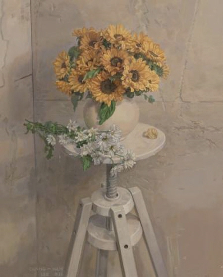 이창남 作_Flowers on the Stool_100x80.3cm_Oil on canvas_2023