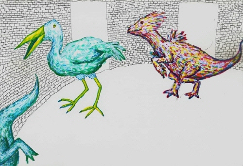 A bird_30x21cm_종이에 아크릴과 볼펜_2021, 2023