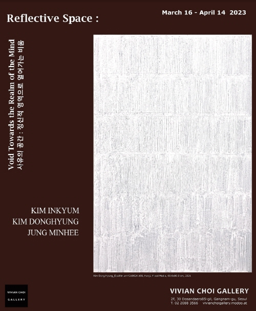“그림에서 그리는 것도, 표현하는 것도, 지우는 것도 모두 표현” 이라고 했던 김인겸 작가의 말처럼 이미 존재하는 것을 새로운 시선으로 바라보고 새로운 가치를 불어 넣은 김인겸, 김동형, 정민희 세 작가의 3인전 《사유의 공간 : 정신적 영역으로 열어가는 비움 (Reflective Space : Void Towards The Realm of The Mind)》 을 통해 관념화 된 틀을 지워내는 만큼 작품을 폭넓게 이해할 수 있음을 느껴보기 바란다.