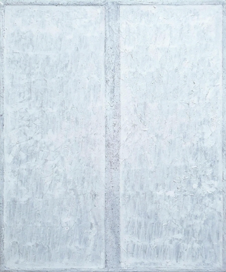 2017 도솔미술대전 한국화 부문 대상을 수상한 김동형 작가는 오래된 건축 벽면에 남은 균열이나 혹은 녹슨 현상들을 통해서 세월의 흔적이 건축 벽면에 축적된 이미지를 재해석하고 확장하여 자연과 인위의 관계에 대한 작가의 사유를 작품을 통해 표현한다. 유년 시절 건축 일을 하는 아버지의 영향으로 건축 현장을 접한 김동형은 건축물의 외벽이나 내벽의 도면에 주목하고 그 안에 저절로 새겨진 흔적에서 느끼는 작가의 심상을 작품에 담아낸다. 김동형 작가는 인위적 재료인 아크릴릭필러와 같은 건축용 자재를 사용하여 먼저 캔버스에 질감을 조성한다. 그 위에 자연의 재료인 한지를 덮어서 거친 질감을 중화시키고 선긋기를 반복하거나 여러 겹의 색 층을 올린다. 이후 작가는 흰 물감으로 작업의 모든 과정을 지우는 수행을 반복하는데 작품 창작의 인고의 과정을 흰 색으로 덮어가며 이미 그린 그림을 다시 지우는 행위는 역설적으로 작품을 완성하는 하나의 과정이 된다. 작품을 그리고 다시 지우는 모순된 방식은 김동형 작품의 근본적인 논리를 대변한다. 세월의 흐름으로 마모되고 해체되어 질감과 물성만 남은 건축 벽면의 흔적을 통해 작가는 인간의 인위적 노력이 자연의 이치에 순응하는 과정을 시각적으로 표현한다.