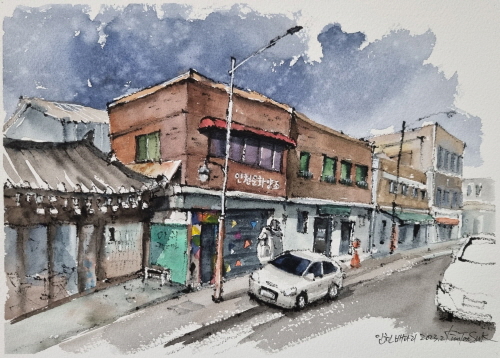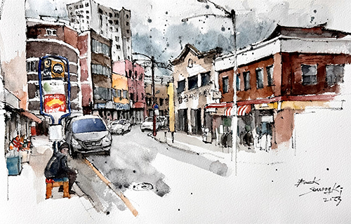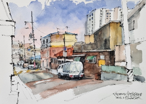 공모선정_김태석 作_창영초등학교앞_헤리티지300g 중목-먹물드로잉에 수채_2023