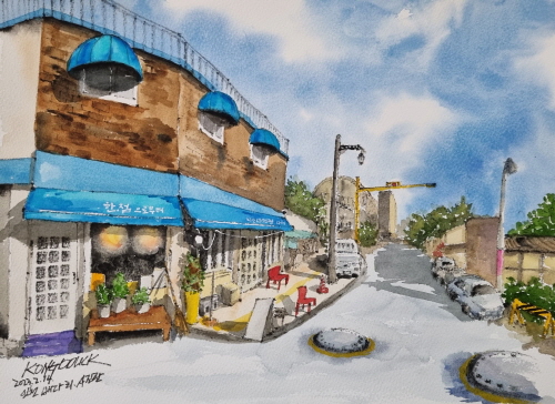 공모선정_김명희 作_배다리 빨래터카페_카디페이퍼,수채물감_30x21cm_2023