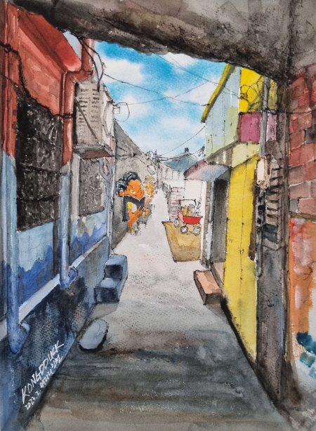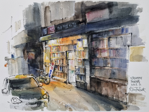 공모선정_김명희 作_배다리 헌책방거리_아르쉬,수채물감_28.5x21cm_2023