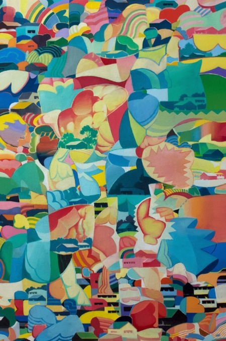 화면 속 도시 이미지는 거듭 중첩된 채 표류하고, 또 집합하고 있다. 이는 인천에서 독일 라이프찌히로 이동하며 작가가 살아온 삶의 노정과 무관해보이지 않는다. 이미지는 저마다 고립된 듯하면서 다른 이미지들과 어울려 어디론가 행진하고 있다. 방향은 알 수 없다. 이것이 유동성이다. 형체는 일그러지고, 납작하게 기고 있거나 부유하면서 색색이 끓어오르고 있다.