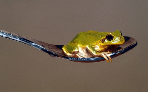 1 작가 김영성의 근작들에는 아주 작은 생명체들이 당당한 주인공으로 등장한다. 그는 큰 것들을 제치고 작은 것들, 보잘것 없는 것들에 무한한 애정을 보낸다. 그는 이들을 자신의 침대 가까이에 두고 이들과 삶을 공유하고 있다. 먹이를 제때에 공급하는 건 물론 생존에 필요한 알맞은 환경을 배려한다. 크게 보아 2천 년대 중반부터다. 애초(2006~ )에는 뿔이 요란한 작은 곤충과 지내더니, 어느 사이엔가 물고기(2009~ )로 바꾸었다. 근자에는 달팽이와 개구리(2011~ )가 그의 시선을 사로잡고 있다. 작품 명제는 이름 하여 <무 · 생 · 물>이다. ‘보잘것 없다는 것’, ‘살아 있다는 것’, ‘생명 없는 물체’라는 걸 차례로 열거하여 명제로 한 것이다. 그가 요즘 다루는 생명체는 확대경으로 보아야 실체를 확연히 알 수 있는 아주 작은 것들이다. 작은 티스푼 위에 정갈한 자세로 앉아 있는 달팽이는 제법 엄숙하다. 유리 물 컵 안에서 유영을 즐기는 반짝이는 비늘을 한 빨간색 관상어의 생김새는 찬연하고 보석 같다. 무늬가 요란한 황개구리와 청개구리는 의젓한 군자 같다. 그는 이것들의 길이를 10~50배, 면적을 100~2500배 크기로 확대해서 그렸다. 그림에서는 일상의 크기로 보이나, 알고 보면 작은 것들임을 실감할 수 있다. 일찍이 작가는 큰 것들보다는 참을 수 없이 작은 것들에 연민을 가져왔다. 우아미를자랑하는 나비류類보다는 구조가 입체적이면서 아기자기하고 섬찟한 작은 것들에 주목했다. 그 이전, 1990년대의 탐색기에는 비교적 큰 것들을 그렸다. 뒤엉켜 으깨진 인체와 오브제의 파편들, 아니면 필드에서 운동중인 남녀 골퍼들을 그리다가, 이들에 대한 시선을 접고 2천 년대부터는 미소한 것들에 관심을 쏟고 있다. 그의 근작들은 작은 것들에 바치는 ‘헌사’獻辭 dedication라 할 수 있다. 그의 「작업노트」가 이를 말해준다. 크게 두 가지 점에서다. 하나는 생명현상의 메타포로서 작은 것들의 특이한 구조적 아름다움에 대한 관심 때문이다. 평소에는 미미한 존재였으나, 어느 순간 우리의 눈길을 끌면서 불현듯 시선을 사로잡는 아주 작은 것들이 종종 생명에 대한 외경畏敬을 촉발할 때 경이로움이 야기되는 걸 컨셉으로 도입하려는 데서다. 그가 작은 것들을 등장시키는 또 다른 이유는 현대문명의 물질화와 더불어 살아있는 생명체 보다는 기계와 같은 무생명한것들, 요컨대 기능적인 것들을 과대평가하는 풍조에 대해 비판을 제기하려는 데 있다. 이 또한 그의 근작 세계를 떠받치고 있는 근간이자 전제가 되고 있다.