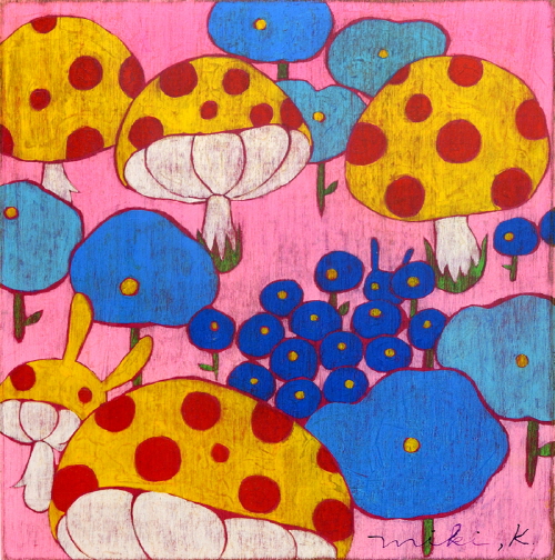 미키 카리야 Miki Kariya 作_Don't eat me! こっそりしている_acrylic on board_41x41cm_2022