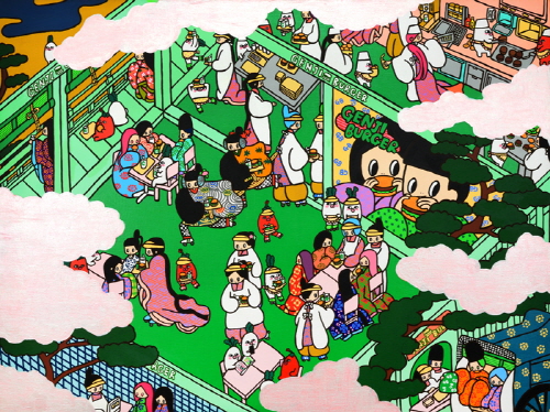 마키 호소카와 Maki Hosokawa 作_Illusional Story of Genji, GENJI BURGER_acrylic on canvas_97x130.3cm_2021