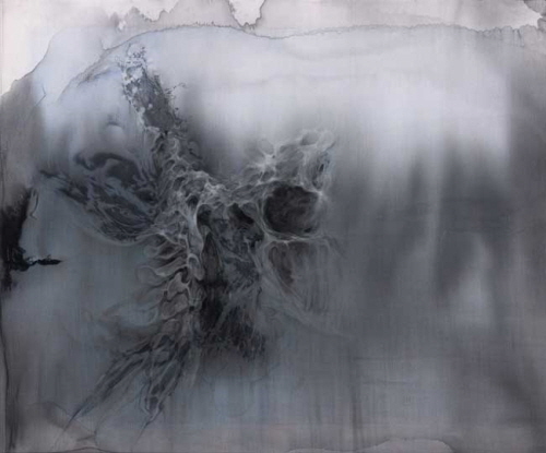 Close up of Yein Son's Flames from within_Ink and watercolour on fabric_130.3x97cm_2023