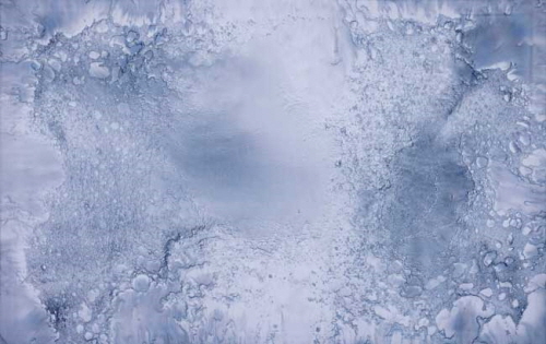 그림의 표면과 피부 사이의 물리적 유사성, 그와 관련된 비유, 그리고 해석이 작업의 근간을 이루고 있다. 피부의 특징들을 연구하는 가운데 정신분석학자 디디에 앙지외의 ‘피부 자아’ 개념을 적용시켜 피부를 얇은 경계면으로 해석하면서 다층적으로, 다각적으로 탐색해 오고 있다. 앙지외는 피부가 온 몸을 감싸고 있듯이 외부자극을 받아들이고 걸러내어 자아를 형성시키는 막의 존재를 정신적 이미지로서 ‘피부 자아’라 하였다. 나는 이 개념을 그림 표면에 접목시켰고 안팎으로 통하는 막으로 해석하여 재료의 투과성, 투명도 및 농도 차이를 실험하는 과정에서 여러 요소들이 개입되도록 한다. 팽팽하게 당겨지거나 주름진 천에 다양한 물감 층을 얹고 마르기 전에 다시 색을 올리고 또 조금씩 씻어내는 반복적인 과정을 통해 독특한 표면 위의 질감과 다채로운 물질성을 획득한다. 결과적으로 안료가 침투해 표면에 번진 조형적 표현과 빛이 새어 나온 듯 배어나온 얼룩이 공존하는 표면 효과가 눈에 띄는 특징이라 하겠다. 미세한 입자들이 층층이 쌓여 만들어진 촉각적인 화면은 그 안에 축적된 시간을 느낄 수 있게 하며 절제된 단색조의 사색적인 분위기가 정교한 표면의 질을 더 주목하게 한다. 마치 피부처럼 얇지만 입체감이 느껴지도록 섬세하게 그려낸 표면은 가까이 관찰하면 유기적인 세포 층의 조직을 현미경적으로 들여다 본 듯한 상상을 불러일으킨다. 그러다 한 걸음 물러나 거리를 두고 마주하면 무한한 공간 속을 눈으로 항해하듯 거시적으로 그림의 모습을 감상하도록 하는 새로운 감각을 선사한다.