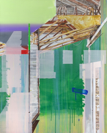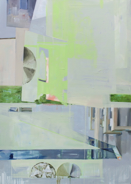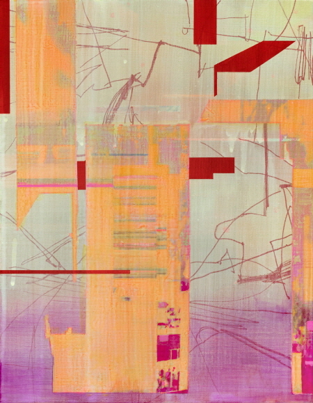 기억은 어떤 형태로든 그 배경인 ‘공간’을 수반한다는 점에서 내가 그리는 기억과 망각의 모습은 공간/건축 이미지와 결부된다. 이는 특정 기억의 재현과는 무관하며 단순 소재로서 역할한다. 공간/건축 이미지로부터 해체되고 추출된 시각 편린들은 새로운 장(場)에서 포토몽타주 됨으로써 하나의 통합된 이미지로 재탄생한다. 그 안에는 건축적 윤곽에서 가져온 기하학적 얼개, 그리고 건축 이미지 파편들과 같이 상(象)을 갖춘 조각들부터 색면, 물감 흔적, 드로잉 선과 같이 상이 소거되어버린 조각들이 공존한다.