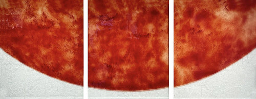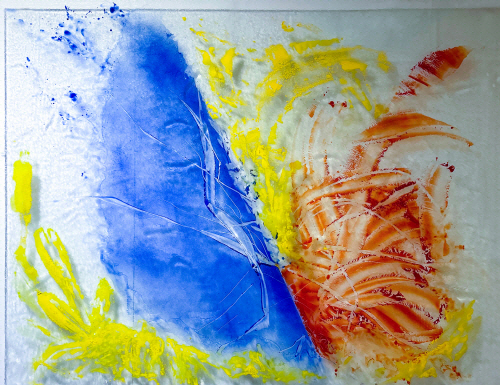 오종현 작가의 작업은 유리 추상 회화 작품이다. 캔버스가 아닌 유리에 작업하고 가마에 구워내는 독특한 작업이며 일반인들에겐 다소 생소하거나 처음 보는 분들도 많을 것이다.