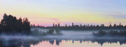 노현우의 풍경회화는 담백하게 고즈넉하고 서정적인 음악이 떠오르는 자연 그대로를 재현하려는 작가의 노력이 드러난다. 그의 회화는 단순한 풍경 속 한 장면으로 보일 수 있지만 기록 행위이기도 하다. 작품 제목은 화면 속 장소와 방문일자의 정보(시간, 온도, 방문날짜 등)로 이루어진다. 마치 일기를 쓰듯 그 시간을 회상하며 순간의 감정과 느낌을 캔버스에 끄집어 낸다. 작가의 풍경의 시작점은 그의 러시아 유학시절부터로, 한국에서 볼 수 없었던 풍경들, 사람의 손이 거의 닿지 않은 순수한 자연을 보고 타국에서 이방인으로써 느꼈던 공허함을 자연이 위로해주고 채워주었던 경험의 기록이 풍경작업의 계기가 되었다. 작가의 그림은 그의 기억속으로 관람자를 초대하고자 그가 느꼈던 감정을 보다 잘 전달하기 위해 사실적 표현이라는 수단을 선택했다. 섬세한 그의 표현력 덕분에 평면을 너머 현장감을 느끼기에 충분하다.