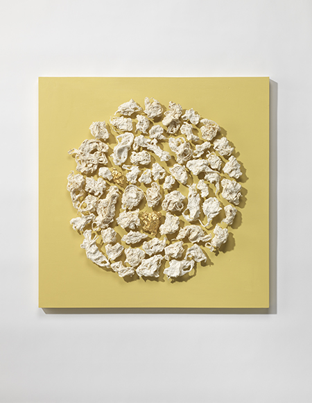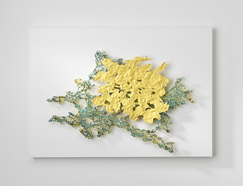 봄의 정원 5_75x55x5.5cm_닥 섬유, 폴리 사, 안료, 금박, 머신 스티치_2019