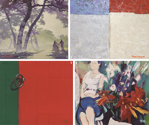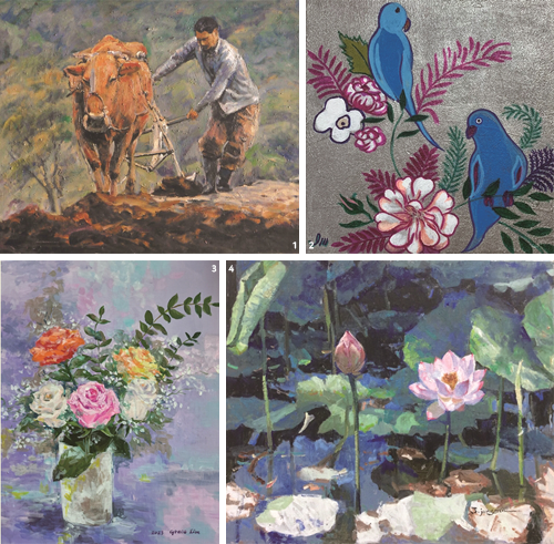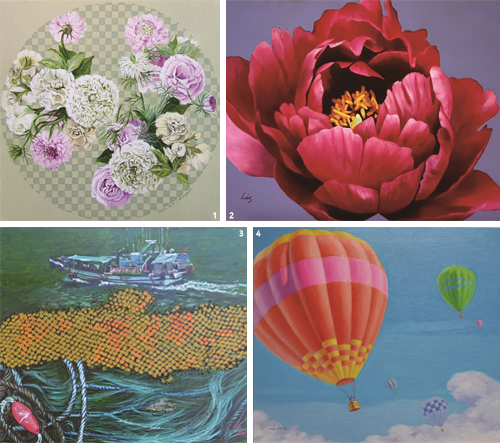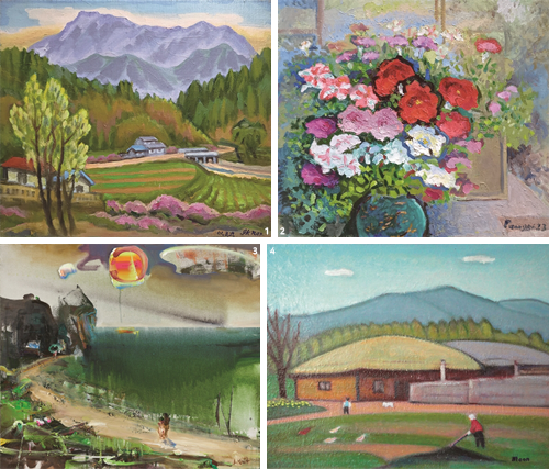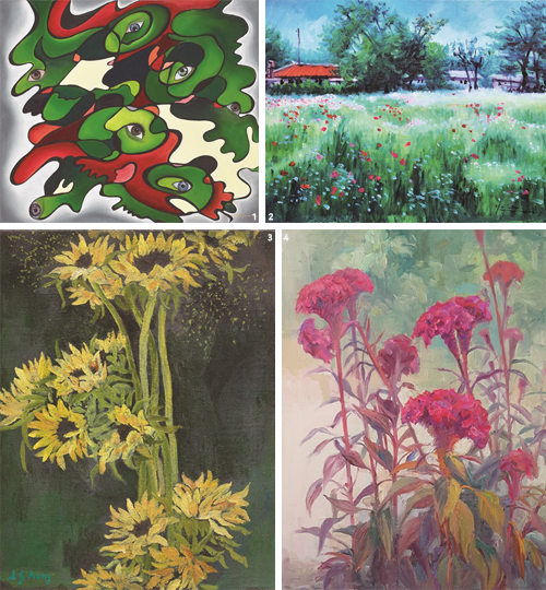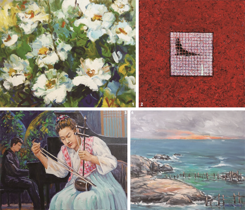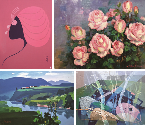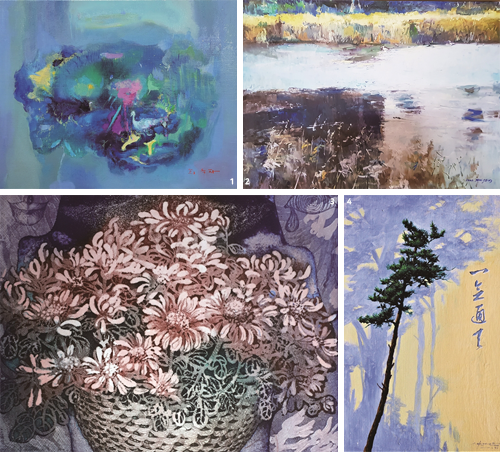 1. 김익란 作_봄소식_53.0x45.5cm_Oil on canvas 2. 백성기 作_피튜니어(petunia)_53.0x45.5cm_Oil on canvas 3. 신범승 作_산책_63x63cm_Oil on canvas 4. 문상렬 作_고향 생각_41.0x31.8cm_Oil on canvas