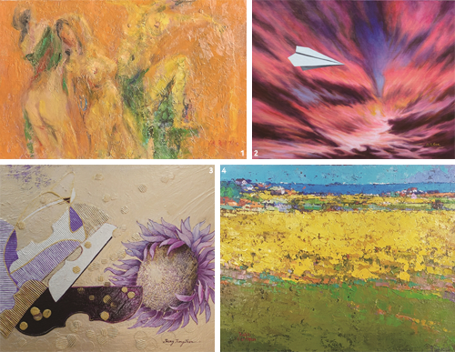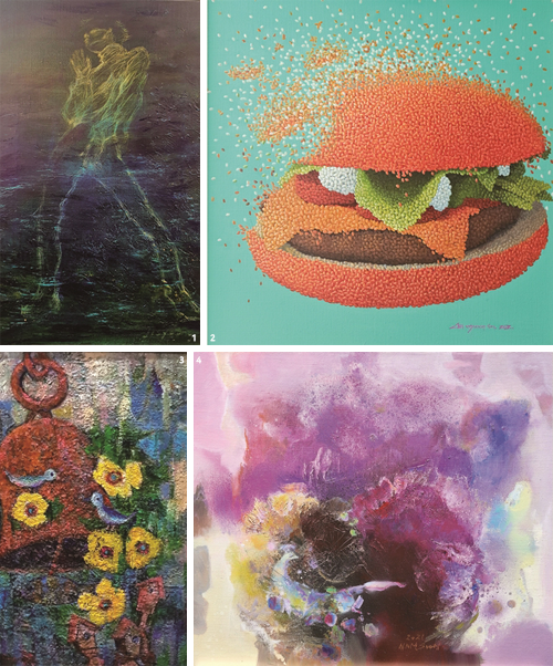 1. 지선영 作_Flow-Dance_53.0x33.4cm_Oil, Mixed media on canvas 2. 차명임 作_Rice Hamburger_60x60cm_Acrylic on canvas 3. 차선영 作_자연의 소리_53.0x33.3cm_Oil, Mixed media 4. 최남순 作_Delighted smile_45.5x45.5cm_Oil on canvas
