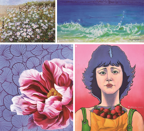 1. 유해랑 作_데이지꽃_53.0x41.0cm_Oil on canvas 2. 윤정단 作_옥빛 파도의 연주_65.0x32.0cm_Oil, Mixed media 3. 이경용 作_순수한 사랑_53.0x45.5cm_Oil on canvas 4. 이득희 作_A woman with strawberries..._53.0x45.5cm_Oil on canvas