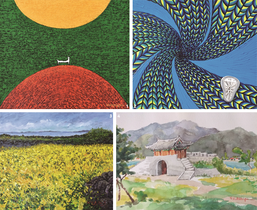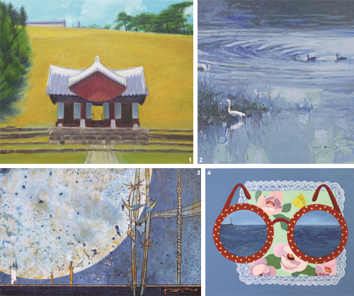 1. 김성실 作_영월 장릉(莊陵)-단종묘(端宗廟)_53.0x45.5cm_Oil on canvas 2. 김예순 作_파라호에서_37.9x37.9cm_Oil on canvas 3. 김용식 作_月舞(봄밤-hidden heart)_53.0x33.4cm_Mixed media 4. 김진영 作_봄_53x45cm_Acrylic on canvas