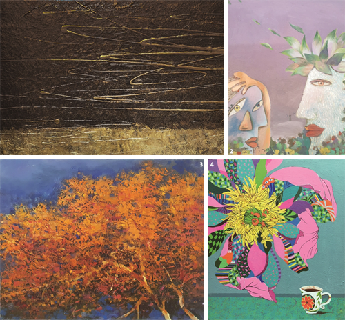 1. 조병철 作_Golden time22-0802_65.1x45.5cm_Mixed media 2. 조연주 作_Dream_40.9x31.8cm_Oil on canvas 3. 조우숙 作_그리운 날에_53.0x45.5cm_Oil on canvas 4. 조향순 作_피어나다_53.0x45.5cm_Acrylic on canvas