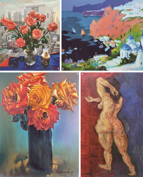 1. 이길순 作_by the window_53.0x45.5cm_Oil on canvas 2. 조성호 作_Santorini_53.0x45.5cm_Acrylic on canvas 3. 정지권 作_장미_53.0x40.9cm_Oil on canvas 4. 유윤식 作_Nude_53.0x33.4cm_Oil on canvas