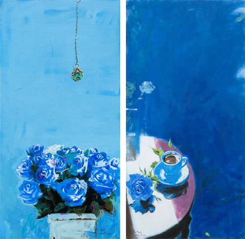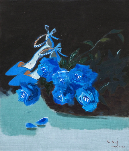 파란색에 대한 표현의 욕구에 빠져지내던 어느날, 저는 우연히 파란 장미에 현혹되었습니다. 눈으로 본 것을 넘어 강력한 시상을 마음으로 표현해보고 싶어진겁니다.