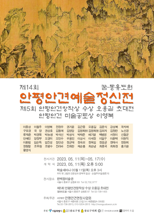 * 전시메일에 등록된 모든 이미지와 글은 작가와 필자에게 저작권이 있습니다. * vol.20230511-제14회 안평안견예술정신전 |