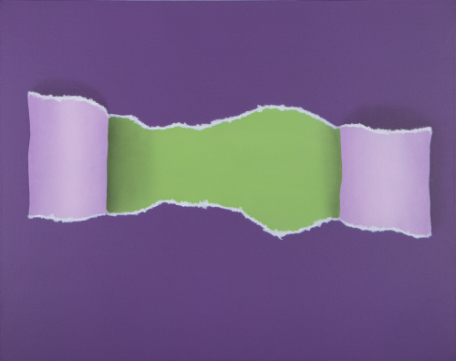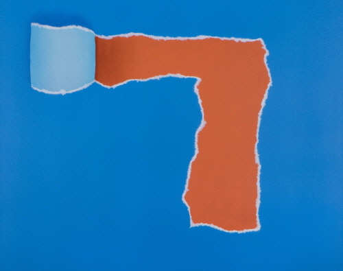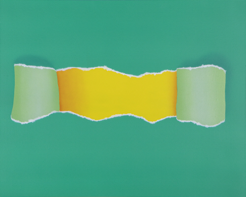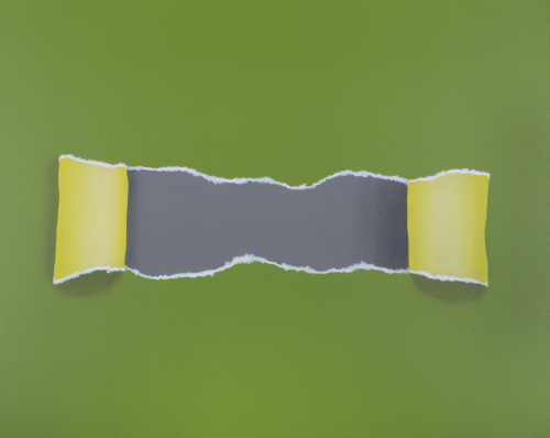 이번 전시는 한글 문자에 ’신 훈민정음 해독‘ 이라는 부재가 있다. 놀이를 즐겨하던 조상들처럼 놀이를 선보인다. 아이들이 가지고 노는 색종이 찢기를 캔버스에 옮겼다. 회화의 기본적 요소만 남기고 탈수 했다.