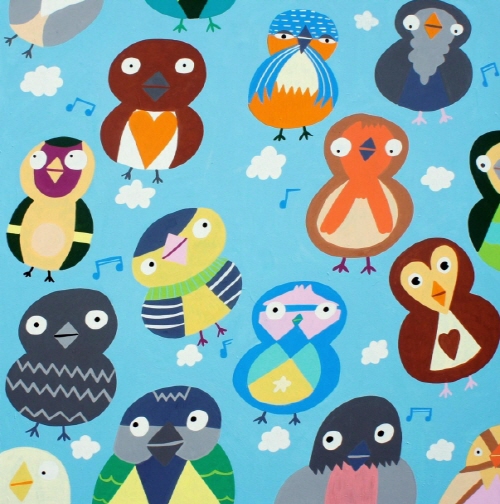 British Birds 2022_Acrylic, paint pen and ink on canvas_100x100cm
