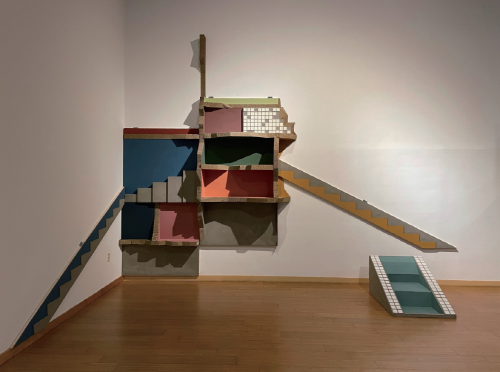유지원 作_Biblio-Trace(흔적 서재)_Installation, Wood, Cardboard, Acrylic paint, Ciment, Tiles_Size Variable_2021