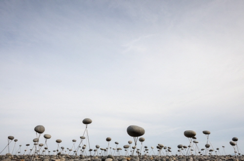 박아론 作_The Rising Stones_전남 완도 정도리, 몽돌, 스테인리스 스틸_가변설치_2016