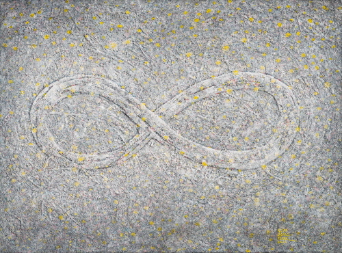 일수사견의 사전적 의미는 한 가지 물을 네 가지로 본다는 뜻으로, 같은 물이라도 다른 관점으로 볼 수 있음을 이르는 말이다. 즉, 세상은 있는 대로 보이는 게 아니라 보는 대로 존재하며, 보는 관점과 시점에 따라 생각과 해석(판단)의 가치 기준이 달라진다는 논리를 바탕으로 한 “일수사견(一水四見)”의 연작시리즈는 소통의 도구로서, 일상에서 흔히 사용하고 있는 다양한 기호들을 차용하여 상징과 기호로서의 언어와 소통을 시각적 회화(이미지)로 표현하고자 했다.