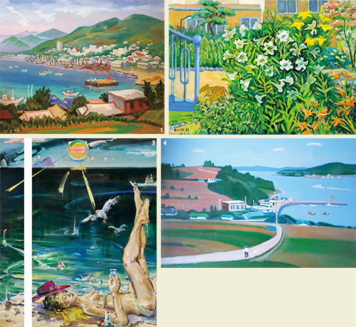 1. 김익란 作_5월의 포구_90.9x72.7cm_oil on canvas 2. 백성기作_백합_91.0x65.2cm_Oil on canvas_2023 3. 신범승 作_그리고 해조음_oil on canvas_76x66cm_2022 4. 문상렬 作_섬마을 할머니_91.0x60.6cm_Oil on canvas