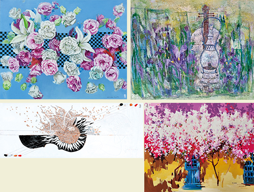 1. 이은희 作_behold the beauty - 향기나눔_90.9x72.7cm_Oil on canvas 2. 차선영 作_아이리스와 정담_91.0x72.7cm_Mixed media 3. 성정순 作_for Rianna-하모니_90x33cm_Mixed media 4. 신미상 作_화려한 외출_100x80.3cm_Mixed media
