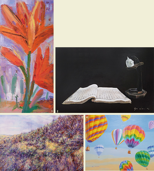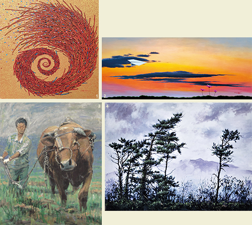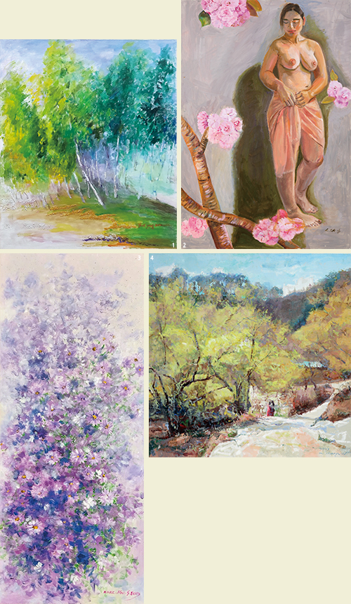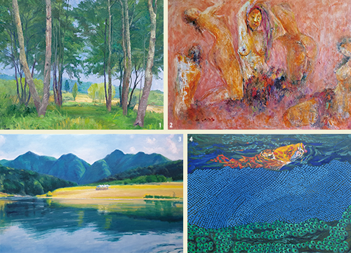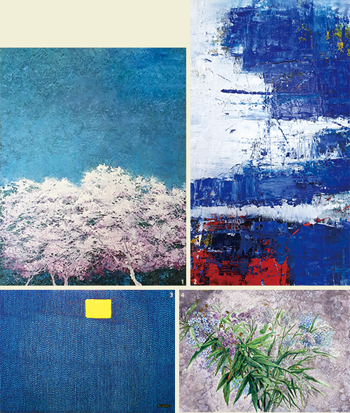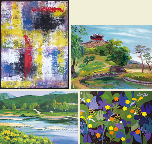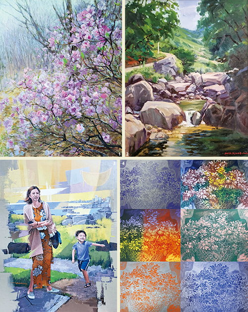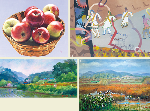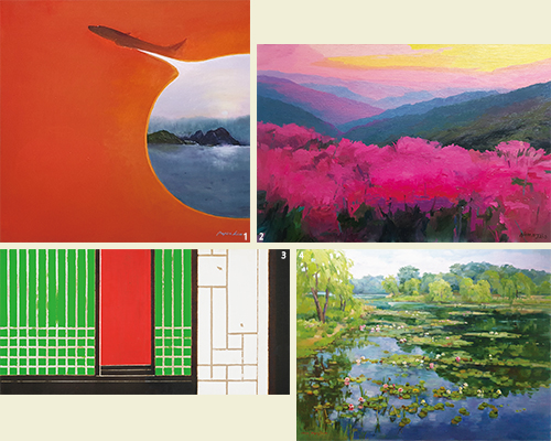 1. 오정은 作_진달래_90.9x72.7cm_oil on canvas 2. 박경순 作_사나사의 여름 545_91.0x65.2cm_Oil on canvas 3. 김동춘 作_Spring outing Jeju_116.7x91.0cm_Oil on canvas 4. 한영희 作_국화옆에서_100x80.3cm_판화, 혼합재료