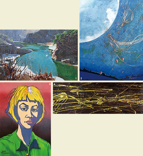 1. 장정순 作_물빛고운 한탄강_90.9x60.6cm_Oil on canvas 2. 김용식 作_월무(freedom 2023)_90.9x72.7cm_Mixed media 3. 이득희 作_puberty_90.9x72.7cm_Oil on canvas 4. 조병철 作_Golden Time 2202_90×30cm_Mixed media