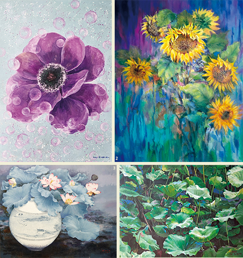 1. 임승녀 作_완전한사랑_90.9x65.1cm_Oil on canvas 2. 유해랑 作_해바라기_91.0x72.7cm_Oil on canvas 3. 이명임 作_추억이 핀 꽃_90.9x72.7cm_Oil on canvas 4. 이경희 作_연_90.5x60.5cm_Oil on canvas