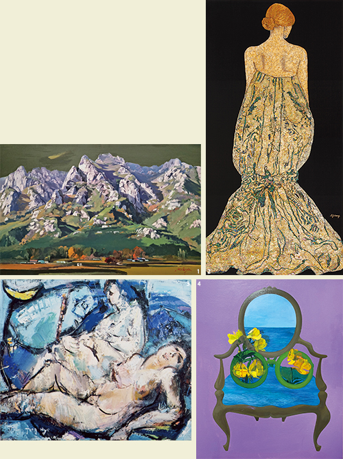 1. 김길자 作_초가을의 월출산_90.9x60.6cm_Oil on canvas 2. 공숙자 作_여인_60×120cm_난각, 자개, 금판 옻칠판위에 옻칠기법 3. 배정혜 作_상념_73x61cm_Oil on canvas 4. 김진영 作_엄마의 바다_73x61cm_Acrylic on canvas