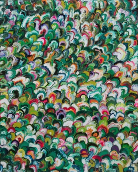 적녹색의 컬러팔레트가 보는 이의 시각을 압도하는 작가 이소윤의 작업은 유년 시절의 푸르렀던 전원생활의 기억에 출발점을 두고 있다. 짙은 녹음의 인상을 화면 위로 옮겨와 물감이 덩어리째 서로 진하게 뒤엉킨 마띠에르가 추상적인 ‘혼돈’의 모습으로 드러나는데, 작가는 혼돈의 대상은 결국 화려한 ‘자연의 향연’을 묘사하고 있다 말한다. 겉으로 드러나는 아름다움 그 너머에 내재되어 있는 무한한 자연의 본능과 변화하는 계절의 기운을 회화로 풀어내며 자신만의 스펙트럼을 넓혀가고, 그 안에서 모두가 공유하며 이야기할 수 있는 주제를 화두로 던지며 시각적인 경쾌함을 선사하고자 한다.