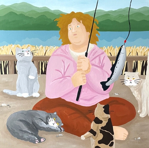 강수정 作_Fishing_91x91cm_Acrylic on canvas_2023