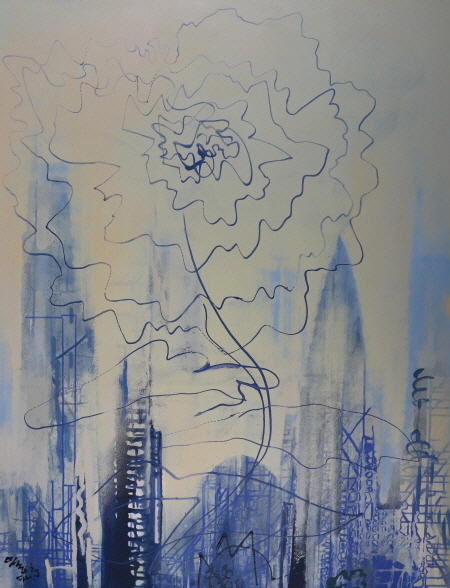 One flower - City life_90.9x60.6cm_Acrylic on Canvas_2023