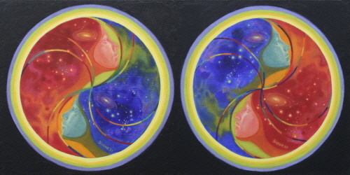 작품의 철학과 이론적 배경은 거울 대칭(mirror symmetry)처럼 좌우 대칭 구조로 인식의 차원을 벗어나 순수하고 평안한 마음(초월적 자아)으로부터 기쁨과 행복을 담고 위안과 희망의 메시지를 전하고자 한다. 현실의 삶에서 스트레스 및 상처를 받는 사람들이 자신의 내적인 치유를 얻고 자존감, 자신감을 회복하는 마음을 담아내고 당신은 귀한 보석처럼 소중하다는 의미를 담고 있다. 불교에서 말하는 자타불이(自他不二- 나와 남이 둘이 아니다. )와 같이 상생과 화합의 길을 모색하고 열어간다. 한국의 미술에서 우주 변화의 원리처럼 하늘, 땅, 사람을 상징하는 원방각(圓方角)을 표현한 것으로 보이고 서양의 미술에서 사물의 형태를 말하며 사물의 모양을 구체적으로 알아볼 수 있는 사실주의, 자연주의 성향을 보인다. 양자역학에서 미시세계로 갈수록 모든 거시 세계의 근본이 에너지, 공한 것, 즉 영적인 것에 도달한다는 것과도 일맥상통한다.