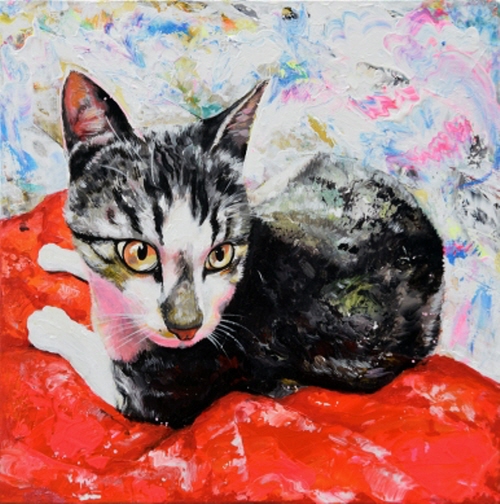이세준 作_빨강 위에 고양이 2017, 캔버스위에 아크릴, 45.5x45.cm
