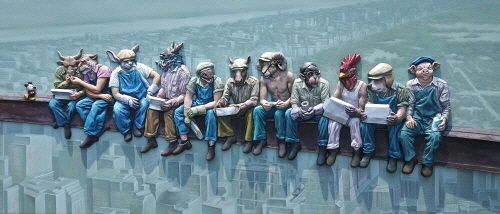 Lunch atop a Skyscraper_237x104x9cm_캔버스 위 아크릴채색, 부조에 아크릴채색, 혼합재료_2023