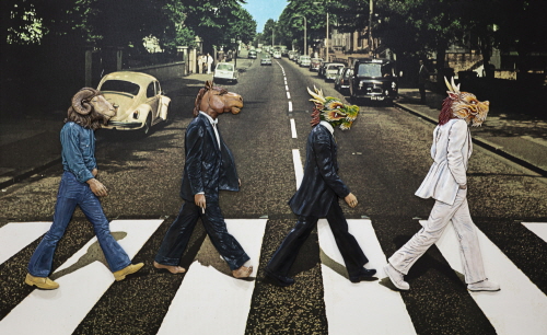 The Beatles Abbey Road-1969 John Lenon 1940 용띠, Ringo Starr 1940 용띠, Paul McCartney 1942 말띠, George Harrison 1943 양띠_ 153x96x7cm_캔버스 위 실사출력, 부조에 아크릴채색, 혼합재료_2011/2014/2023