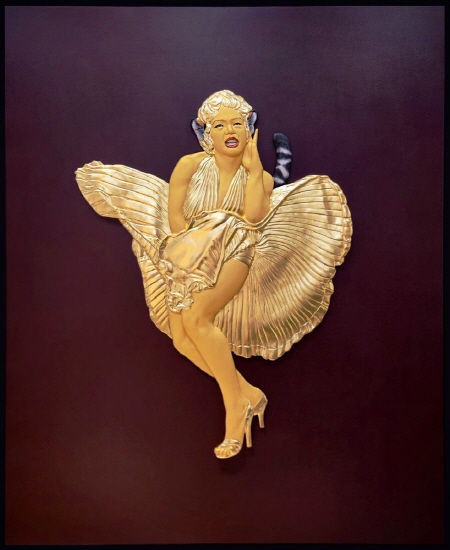 7년만의 외출-마를린 먼로(gold) 1926년생 범띠_107.2x129.2x10cm_ 캔버스 위 실사출력, 부조에 개금작업 금분(金粉) 금지(金紙), 단청작업_2022