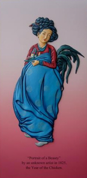 웃고있는 미인도-2 1825년 3월 16일 닭띠해_63x126x7cm_ 캔버스 위 실사출력, 부조에 유화, 혼합재료_2017/2022