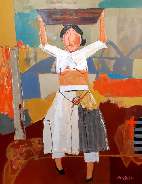 행상여인 Peddler Woman_116.7x91.0cm_Acrylic Collage & Oil on canvas_2022